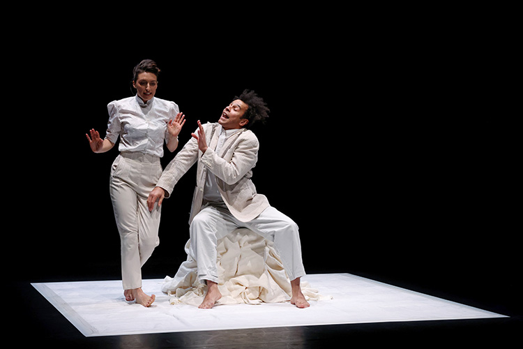SHE DREAMT OF BEING WASHED AWAY TO THE COAST, Concept et chorégraphie Lukas Karvelis, Musique Dominykas Digimas, Costumes Morta Nakaitė, Création lumière Povilas Laurinaitis, Regard extérieur Bush Hartsorn, dans le cadre de la Saison de la Lituanie en France 2024, avec le Lithuanian Dance Information Center,
